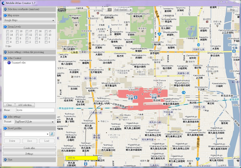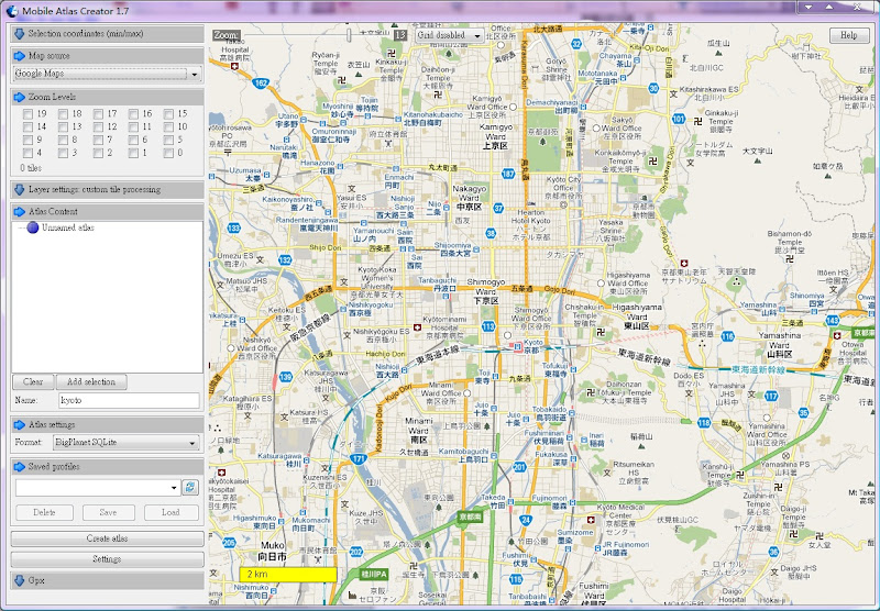 5.將地圖輸出類型設定在「BigPlanet SQLite」,這屬於資料庫結構格式,容量較圖片類型格式小,用於RMaps